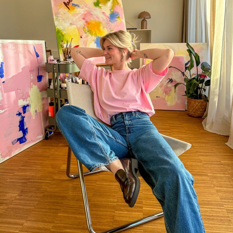 Das Tanzen war lange mein Zuhause, vielleicht male ich deshalb nicht still. Bewegung, Rhythmus und Körpergefühl fließen ganz natürlich in meine Arbeiten ein. Und das Setleben als Hair & Make Up Artist hat meinen Blick für Farben, Texturen und Ästhetik geschärft.